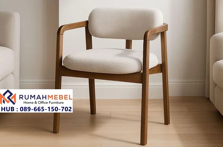 Kombinasi kontras antara rangka kayu alami dan bantalan lembut berwarna cerah menciptakan sentuhan visual yang menenangkan sekaligus menawan. Kursi ini sangat mudah disesuaikan dengan berbagai tema meja kayu maupun gaya interior minimalis modern.