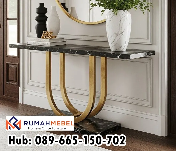 Meja konsol merupakan salah satu furnitur yang kini semakin banyak diminati untuk mempercantik tampilan interior rumah. Dengan desain yang ramping dan elegan, meja ini sering ditempatkan di area ruang tamu, lorong rumah, maupun dekat pintu masuk. Salah satu model yang sedang populer adalah meja konsol dengan rangka stainless dan permukaan marmer. Perpaduan dua material ini menghadirkan kesan mewah, modern, sekaligus kokoh untuk berbagai konsep interior rumah.