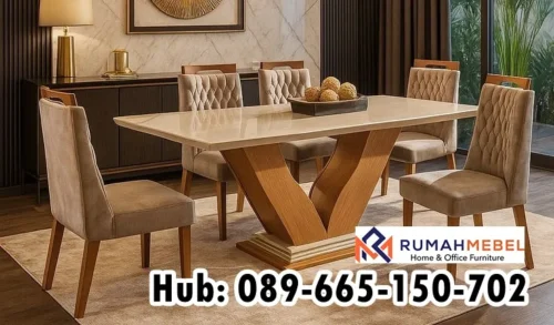 Hadirkan Meja Makan Marmer Rangka Kayu Kualitas Number One merupakan pilihan sempurna bagi Anda yang menginginkan perpaduan antara kemewahan alami dan kekuatan konstruksi yang kokoh. Meja ini menghadirkan tampilan elegan melalui permukaan marmer asli yang memiliki motif unik dan eksklusif pada setiap lembarannya, dipadukan dengan rangka kayu solid berkualitas tinggi yang memberikan kesan hangat dan natural. Kombinasi ini menjadikan meja makan tidak hanya sebagai tempat makan, tetapi juga sebagai pusat perhatian yang meningkatkan estetika seluruh ruangan.