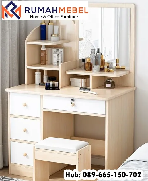 Menampilkan Keindahan dalam Setiap Sudut, meja Rias Kombinasi Rak Minimalis dirancang untuk menunjang aktivitas kecantikan dengan gaya eksklusif. Dilengkapi dengan rak kecil multifungsi untuk menyimpan peralatan make up supaya lebuh tertata rapi. Struktur kokoh dan material pilihan menjamin daya tahan maksimal. Ruang penyimpanan tertata rapi sehingga perlengkapan tetap bersih dan mudah dijangkau. Desainnya menyatu sempurna dengan interior modern maupun klasik. Meja rias ini menghadirkan kesan elegan yang tak lekang oleh waktu.