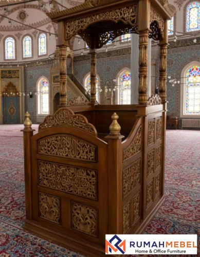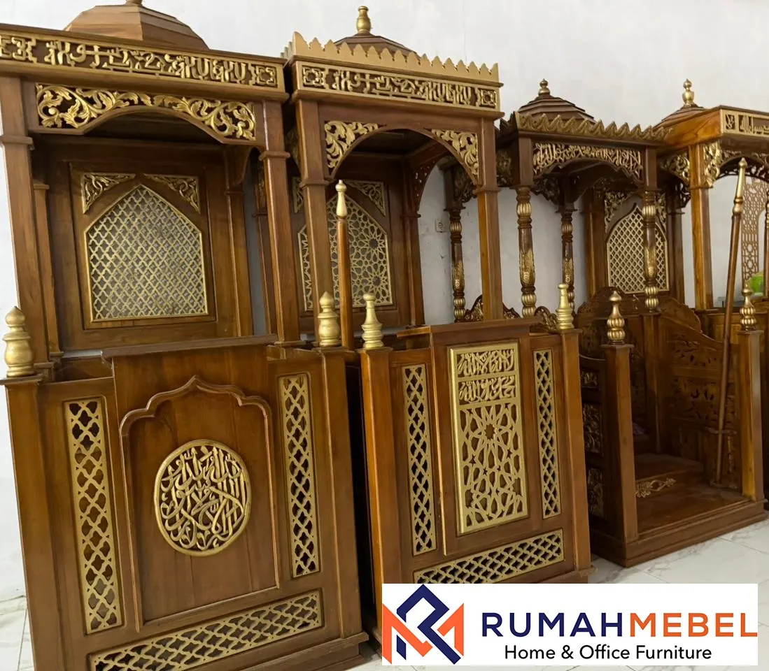 Desain Mimbar Masjid Kualitas Premium Tulungagung tersedia dalam berbagai model dan bentuk, mulai dari minimalis modern hingga ukiran klasik bernuansa Islami. Setiap detail dibuat dengan proses yang teliti untuk menghasilkan produk berkualitas, menyesuaikan ukuran ruang masjid agar terlihat serasi dan tidak berlebihan. Ornamen kaligrafi dapat ditambahkan untuk memperkuat identitas religius dan keindahan visual. Dengan mengutamakan kualitas bahan baku, dan estetika, mimbar masjid premium menjadi pilihan tepat bagi masjid yang ingin menghadirkan suasana ibadah yang lebih khusyuk dan berkelas. Produk ini tidak hanya fungsional, tetapi juga menjadi investasi jangka panjang untuk fasilitas masjid.