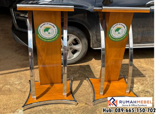 Podium Stainless ini dibuat menggunakan material kayu Jati pilihan yang kokoh dan berkualitas tinggi. Struktur kaki podium dirancang kuat sehingga stabil dan tidak mudah bergoyang saat digunakan. dibuat menggunakan material kayu pilihan yang kokoh dan berkualitas tinggi. Struktur kaki podium dirancang kuat sehingga stabil dan tidak mudah bergoyang saat digunakan.