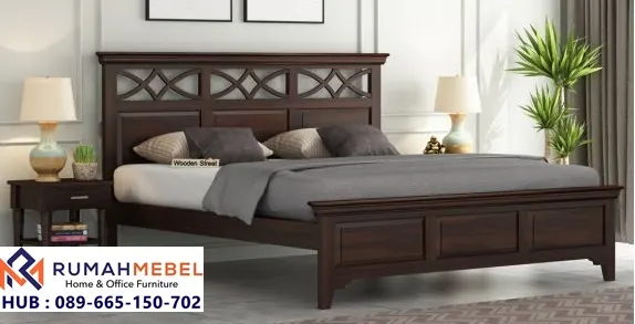 Gaya madura geometris ini memberi nuansa tradisional tetapi tetap cocok untuk rumah dengan gaya minimalis atau klasik modern. Dengan finishing warna coklat gelap yang kaya, serat kayu jati tetap tampak alami, memberikan suasana yang hangat di kamar tidur Anda.