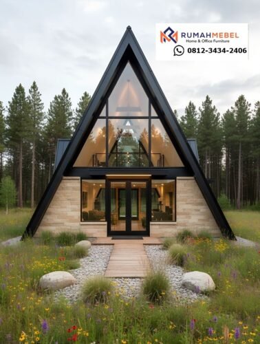 Kabin A-Frame Mewah: Elegan Batu alam, kaca penuh, dan arsitektur segitiga