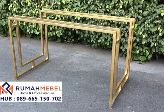 Desain geometrisnya dirancang untuk menahan beban berat, mulai dari permukaan meja kayu solid, marmer (granit), hingga kaca tempered. Sentuhan emas menambah kesan eksklusif dan “mahal”, sangat pas untuk interior bergaya modern classic atau contemporary luxury.