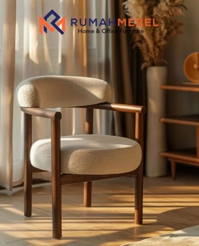 Kursi Armchair Kayu Jati Minimalis adalah perwujudan desain modern yang memprioritaskan kenyamanan dan gaya, menampilkan rangka kayu jati solid berwarna cokelat tua yang menopang sandaran dan dudukan melengkung yang dilapisi kain boucle bertekstur lembut. Desainnya yang ergonomis dan elegan menjadikannya pilihan serbaguna dan sempurna untuk digunakan sebagai kursi makan premium, kursi kerja, atau accent chair yang secara instan meningkatkan estetika ruangan Anda.