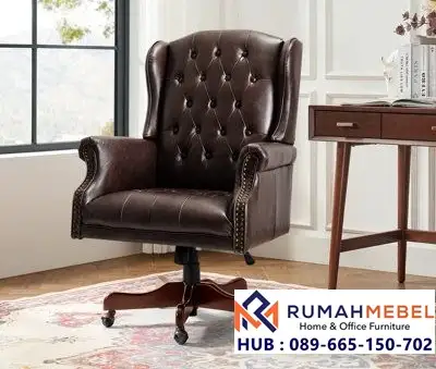 Walaupun menawarkan gaya klasik, kursi ini diperkaya dengan mekanisme modern seperti tinggi kursi yang biasa diatur, kursi putar dan kaki kayu dengan roda. Sangat ideal untuk ruang kerja direktur atau manajer, home office bernuansa industrial atau klasik, serta ruang rapat.