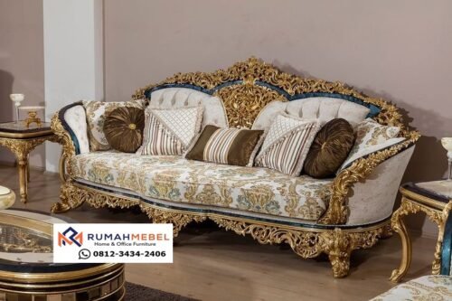 Kursi Ruang Tamu Sofa Ukir Jepara adalah mebel mewah yang terkenal karena ukiran kayunya yang detail dan berkualitas tinggi. Sofa ini memadukan kemewahan dan keindahan seni ukir Jepara dengan kenyamanan sofa, menjadikannya pilihan ideal untuk ruang tamu bergaya klasik dan elegan. Ukiran Jepara ini dibuat secara manual oleh para pengrajin lokal yang memiliki keahlian turun-temurun. Motif-motifnya umumnya terinspirasi dari alam, seperti daun, dan bunga, dengan detail yang rumit dan halus.