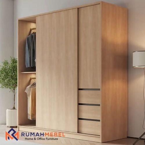 Jangan biarkan kekacauan menguasai kamar Anda! Segera miliki Lemari Pakaian Pintu Geser Nordik ini dan rasakan bedanya kamar yang lebih rapi dan lega. Kunjungi RumahMebel sekarang untuk mendapatkan solusi penyimpanan yang stylish dan efisien!