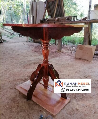 Konstruksi: Top meja kayu jati solid + kaki meja (bisa kayu atau logam untuk aksen minimalis)