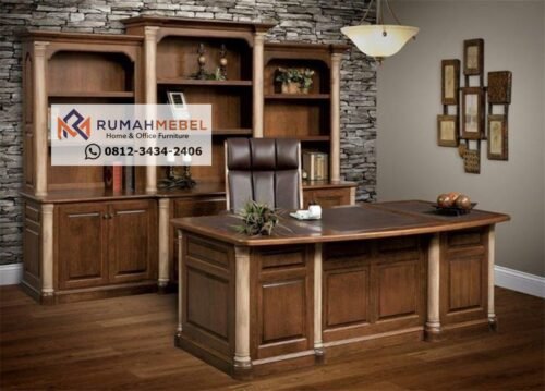 Ciptakan suasana kerja yang nyaman dan penuh gaya dengan rekomendasi Meja Kantor Style Eropa Modern Kayu Jati Klasik. Meja kantor ini dirancang khusus untuk memenuhi kebutuhan ruang kerja eksekutif, dengan detail ornamen yang memberikan kesan mewah dan profesional. Meja ini dilengkapi dengan beberapa laci atau lemari untuk menyimpan dokumen, alat tulis, dan perlengkapan kantor lainnya. Biasanya laci-laci ini juga dihiasi ukiran yang serasi dengan desain utama meja. Meja Kantor Style Eropa Modern ini dirancang untuk menciptakan kesan mewah dan berkelas di ruang kerja. Sangat cocok bagi direktur atau profesional yang menginginkan suasana kantor yang elegan dan berwibawa.