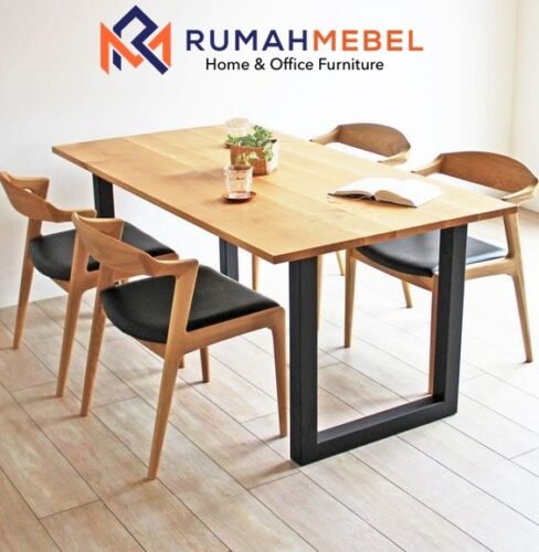 Meja Makan Kayu Minimalis Modern dengan Kaki Besi – Desain Elegan untuk Ruang Makan Stylish