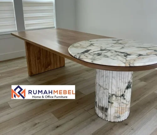 Meja Makan Minimalis Terbaru 2026 menjadi pilihan utama bagi Anda yang menginginkan perpaduan kemewahan dan ketahanan dalam satu produk furnitur. Terbuat dari batu marmer pilihan dengan serat alami yang unik, meja ini mampu menghadirkan kesan mewah sekaligus modern pada ruang makan, ruang tamu, maupun ruang kerja. Permukaan marmer yang halus dan mengkilap juga mudah dibersihkan, sehingga sangat praktis untuk penggunaan jangka panjang.