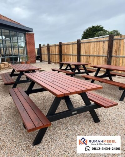 Produk ini sangat cocok untuk kafe outdoor, taman rumah, area istirahat kantor, atau tempat wisata alam. Dengan desain yang simple namun berkelas, meja taman ini bukan hanya fungsional tetapi juga mempercantik area outdoor Anda. Tampil kokoh, rapi, dan menawan dengan furnitur berkualitas dari Rumah Mebel.