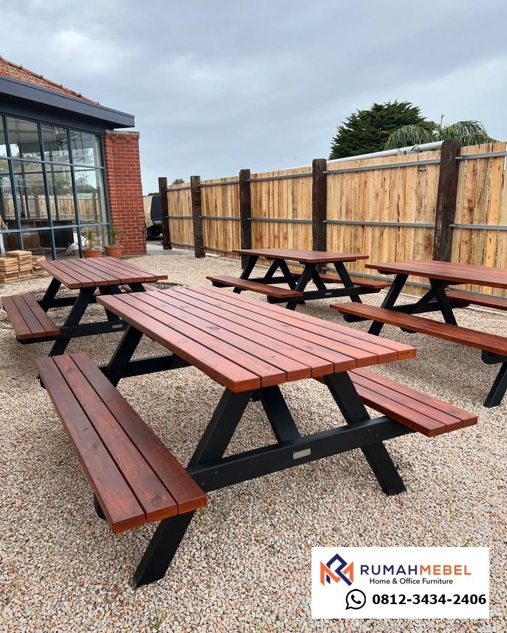 Lengkapi area outdoor Anda dengan Meja Taman Kayu & Besi Outdoor Minimalis dari Rumah Mebel. Terbuat dari material kayu solid berkualitas tinggi dengan rangka besi berlapis powder coating anti karat, meja ini dirancang untuk tahan terhadap berbagai kondisi cuaca. Desainnya yang elegan dan fungsional menjadikannya pilihan ideal untuk taman rumah, kafe, restoran, hingga area publik. Dengan tampilan natural yang hangat dan struktur kokoh, meja ini memberikan kenyamanan sekaligus menambah nilai estetika pada ruang luar Anda.