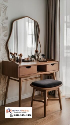 Meja Rias Minimalis Modern Kayu Jati – Desain Elegan dengan Cermin Unik dan Bangku Nyaman