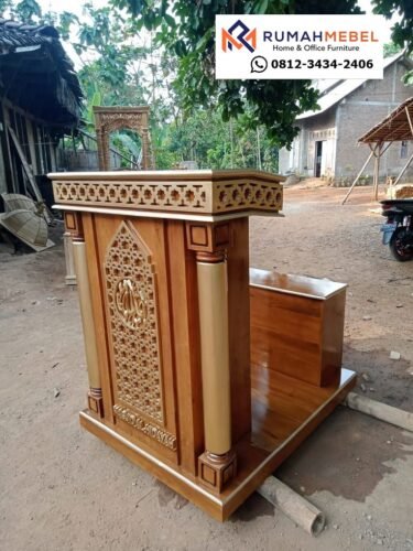 mimbar masjid minimalis jepara. Setiap sentuhan pada mimbar ini adalah perpaduan antara kekuatan dan keindahan alam kayu jati, menciptakan atmosfer yang penuh makna dan khusyuk. Membawa keharuman spiritual dan keanggunan seni ke dalam masjid Anda, Ukiran minimalis yang dipahat dengan cermat menambahkan sentuhan kemewahan dan keunikan. Detail ukiran yang halus menciptakan desain yang bersih dan elegan, menciptakan fokus yang tenang untuk setiap pembicaraan spiritual