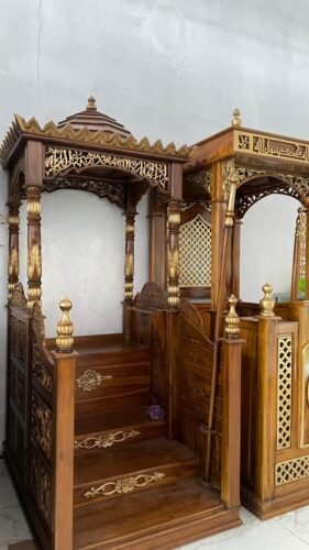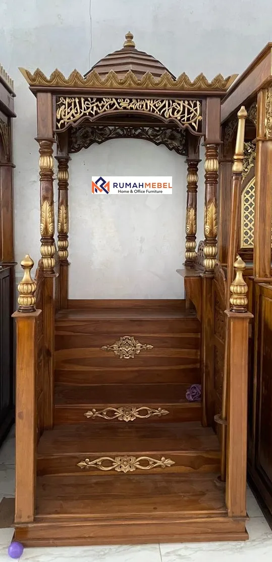 Terbuat dari bahan kayu jati yang memiliki kepadatan dan struktur serat yang sangat baik, hal ini membuatnya sangat kuat dan tahan terhadap kelembaban serta serangan hama kayu seperti rayap, sehingga menjadikan keunggulan ini kayu jati cocok untuk furniture yang digunakan dalam jangka panjang, seperti mimbar masjid.