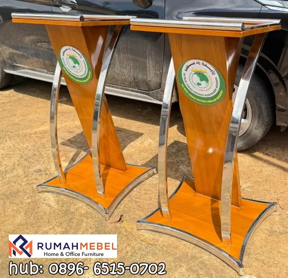 Podium Ceramah Bogor Stainless kami buat dengan menggunakan bahan kayu jati mengandung minyak alami (natural oil) dan zat tectoquinone yang mampu melindungi kayu dari rayap, serangga perusak, jamur, bahkan kelembapan. Tanpa bahan kimia pun, kayu jati tetap kuat dan aman dari kerusakan. Kayu jati bukan hanya sekadar material, tetapi merupakan aset bernilai. Bahan stainless dipilih karena memiliki kandungan kromium minimal 10,5% yang membentuk lapisan pelindung anti karat serta memiliki kekuatan tarik tinggi dan tidak mudah bengkok atau patah.