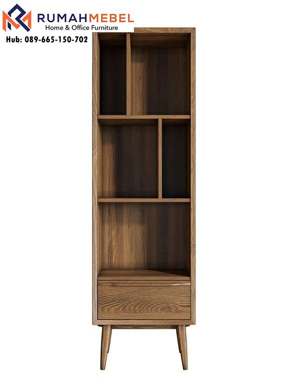 Desain rak ini mengusung konsep open shelving yang memberikan kesan luas pada ruangan. Anda dapat menata koleksi buku favorit, tanaman hias kecil, hingga pernak-pernik estetik lainnya dengan sangat leluasa. Konstruksi kaki rak yang ramping namun kokoh terinspirasi dari gaya mid-century modern, memberikan kestabilan maksimal sekaligus memudahkan Anda saat membersihkan area lantai di bawahnya.
