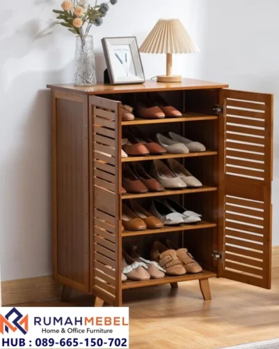 Rak Sepatu Kayu Minimalis Pintu Kisi Kisi
