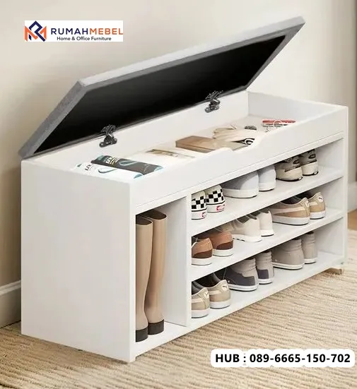 Kami akan memperkenalkan Rak Sepatu Multifungsi dengan penyimpanan yang dirancang tidak hanya untuk menata sepatu, tetapi juga memberikan fungsi tambahan yang praktis dalam rumah. Dengan desain yang modern dan minimalis, rak sepatu ini mampu menyimpan berbagai jenis sepatu seperti sandal, sepatu olahraga, hingga sepatu formal agar tetap rapi dan mudah ditemukan. Beberapa model rak sepatu multifungsi bahkan dilengkapi dengan laci penyimpanan, kabinet tertutup, rak tambahan, atau dudukan bangku sehingga dapat digunakan untuk menyimpan barang lain seperti tas, aksesoris, atau perlengkapan rumah tangga.