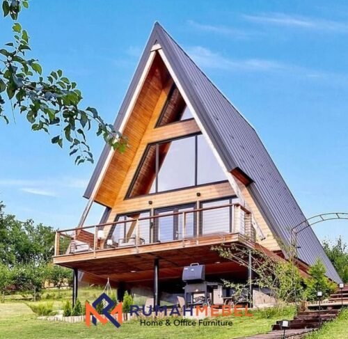 Rumah Segitiga modern ini dirancang untuk menghadirkan hunian yang berbeda dari rumah konvensional. Pertama, bentuk segitiga yang ikonik dipadukan dengan material kayu alami dan kaca berukuran besar untuk menciptakan tampilan yang hangat sekaligus elegan. Desain ini tidak hanya memanjakan mata, tetapi juga memaksimalkan pencahayaan alami sehingga ruang dalam terasa lebih luas, terang, dan nyaman sepanjang hari.