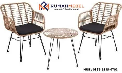 Set ini terdiri dari 2 kursi yang terbuuat dari bahan rotan dan dipadukan dengan kaki besi, serta 1 buah meja. Tak lupa pada bagian dudukan dilengkapi bantalan empuk yang menambah kenyamanan, perawatan kursi teras juga cukup mudah. Bersihkan secara rutin dari debu dan kotoran agar tampilan tetap bersih, jika menggunakan bantalan, sebaiknya disimpan di tempat kering saat tidak digunakan agar tetap awet.
