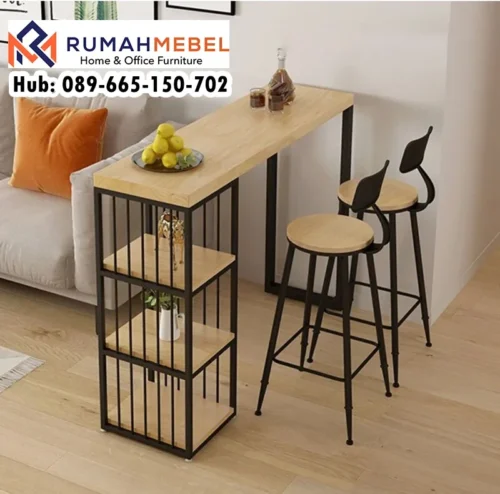 Set Meja Bar Minimalis Industrial Rak Penyimpanan