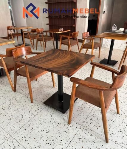 Set Meja Cafe Kayu Trembesi Solid & Kursi Ergonomis Modern