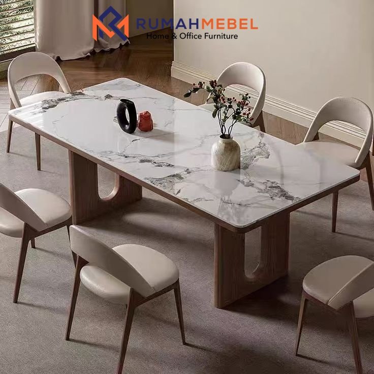 Set Meja Makan Modern Marmer: Kemewahan Minimalis 6 Kursi