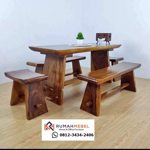 Set Meja Makan Trembesi Solid Minimalis: Meja Kayu Utuh Gaya Industrial