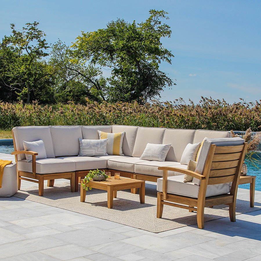 Set Sofa Outdoor Kayu Minimalis ini. Dirancang dengan perpaduan kayu solid berkualitas dan bantalan empuk berlapis kain tahan air, set sofa ini siap menemani waktu santai Anda di taman, teras, atau pinggir kolam renang.