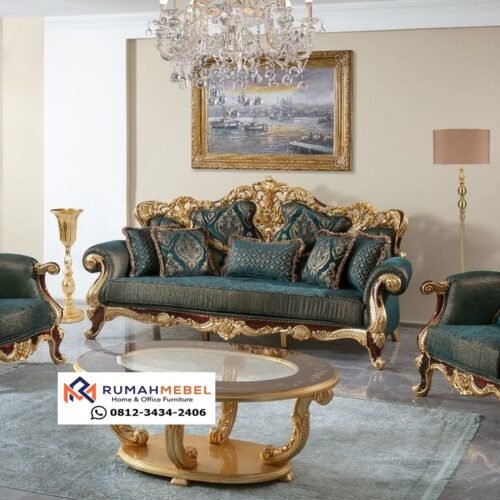 Set Sofa Tamu Incanto Ukir Klasik. Sebuah furnitur mewah yang mengedepankan gaya klasik dengan sentuhan ukiran khas Jepara, desainnya yang elegan dan pengerjaan ukiran tangan yang halus, menjadikan ruang tamu terlihat lebih megah dan berkelas. Sofa ini bukan hanya sekadar furnitur, melainkan sebuah karya seni yang meningkatkan estetika interior rumah anda. Rangka pada sofa menggunakan kayu jati berkualitas tinggi TPK perhutani kami menggunakan kayu jati karena Material ini terkenal kuat, awet, dan tahan terhadap hama sehingga sofa bisa bertahan hingga puluhan tahun. Ukiran pada bingkai sofa sering kali dilapisi dengan finishing cat Duco dan sentuhan warna emas (gold) yang mengkilap untuk menambah kesan mewah dan megah pada ukiran.