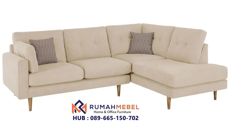 Desain sudut berbentuk L memaksimalkan pemanfaatan ruang di sudut ruangan sehingga tetap terasa luas. Bagian chaise di sisi kanan memberikan pilihan tambahan, baik untuk bersantai atau berbaring. Warna beige atau krem membuat ruangan terlihat lebih cerah, bersih, dan memberikan kesan mewah dengan cepat.