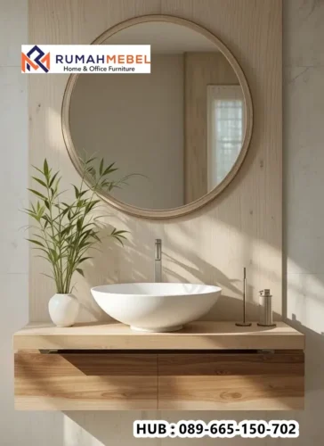 Model wastafel ini biasanya menggabungkan wastafel dengan kabinet penyimpanan di bagian bawah sehingga tidak hanya berfungsi sebagai tempat mencuci tangan tetapi juga membantu menyimpan perlengkapan mandi agar lebih rapi. Wastafel Minimalis Terbaru dengan desain yang populer saat ini antara lain model wall-mounted (gantung) yang hemat ruang, model countertop vessel dengan mangkuk di atas meja, serta kabinet wastafel dengan finishing kayu natural atau warna netral seperti putih, abu-abu, dan hitam. Desain minimalis ini memberikan kesan bersih, elegan, dan modern sehingga kamar mandi terlihat lebih luas dan tertata.